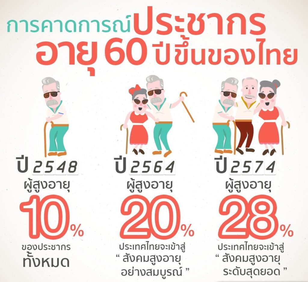การคาดการณ์ประชากรอายุ 60 ปี ขึ้นของไทย